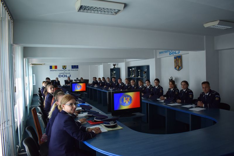 Vasile Lascăr” Câmpina au fost primiți, în prima lor zi de serviciu în cadrul IPJ Dolj, de comandantul inspectoratului, care le-a urat bun venit în rândurile polițiștilor doljeni și le-a oferit sfaturi binevenite la început de carieră.„Este de menționat faptul că cei mai noi 30 de polițiști din cadrul IPJ Dolj fac parte din elita generației lor de absolvenți, obținând, la finalul studiilor, medii foarte mari, cuprinse între 9,43 și 9,85, ceea ce le-a permis să își aleagă primul loc de muncă, în conformitate cu propriile opțiuni, toți alegând să lucreze la inspectoratul doljean. Primele două note au fost obţinute de un băiat şi o fată, care au avut ocazia să aleagă primii dintre cele 30 de posturi disponibile şi, de asemenea, ca urmare a rezultatelor foarte bune la învăţătură, aceştia au primit şi diplome de excelenţă din partea Corpului Naţional al Poliţiştilor”, se arată într-un comunicat de presă remis de IPJ Dolj.Conducerea IPJ Dolj a luat decizia să repartizeze absolvenți atât la subunități din Craiova, Băileşti, Bechet şi Segarcea (șapte absolvenți), cât și la posturi de poliție din mediul rural – 23 de absolvenți (Negoi, Catane, Afumaţi, Bistreţ, Rast, Cernăteşti, Teasc, Dioşti, Amărăştii de Jos, Ostroveni, Plenita - doi absolventi, Ghidici, Verbiţa, Valea Stanciului – doi absolvenţi, Gângiova, Sadova, Bârca, Moţăţei, Terpeziţa, Vârtop si Urzicuţa).