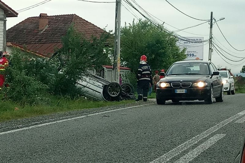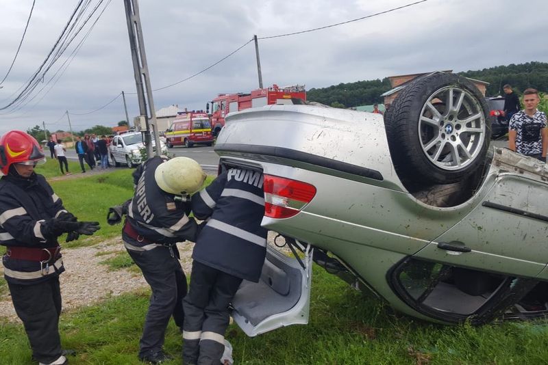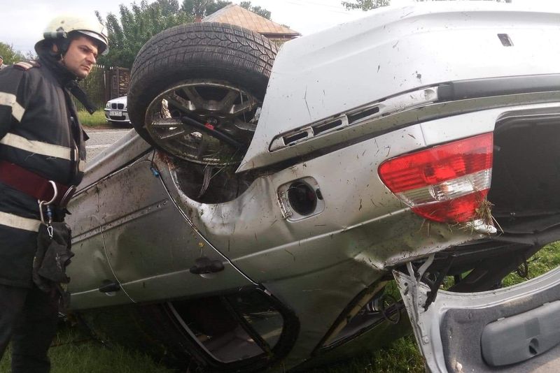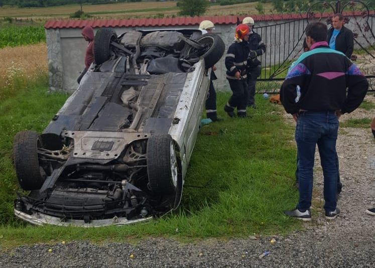 O mașină în care se aflau cinci persoane a derapat pe un drum din comuna gorjeană Scoarța, răsturnându-se în afara părții carosabile.