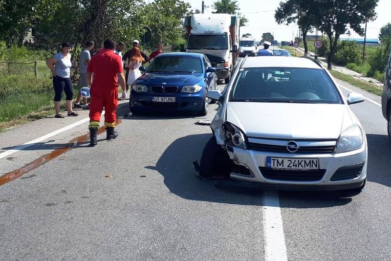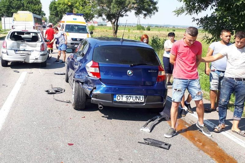 Purtătorul de cuvânt al ISU Olt, Alin Băsăşteanu, a declarat că femeia şi fetiţa au fost transportate la Spitalul Balş.„Pompierii SMURD Balș și un echipaj de la Serviciul de Ambulanță Olt au intervenit la ieșirea din orașul Balș, spre municipiul Slatina, pe E 574, la un accident rutier în care au fost implicate două autoturisme și o autoutilitară. În urma accidentului, o minoră, în vârstă de 5 ani, cu atac de panică și mama acesteia, în vârstă de 36 de ani, cu dureri la cap, ambele cu domiciliul în municipiul Timișoara, au fost transportate la CU Balș”, a declarat Băsăşteanu.Familia din Timişoara se întorcea acasă de la mare. În cauză, poliţiştii au deschis un dosar penal pentru vătămare corporală din culpă.„Din primele cercetări, polițiștii au stabilit faptul că accidentul s-ar fi produs pe fondul nerespectării distanței corespunzătoare în mers. Astfel, conducătorul unei autoutilitare, de 19 ani, din comună Berevoiesti, județul Argeș, deplasându-se pe sensul de mers Slatina-Craiova, nu a păstrat distanță corespunzătoare față de autoturismul din fața să, proiectându-l, la rândul sau, într-un alt autoturism, pe același sens de mers“, a declarat purtătorul de cuvânt al IPJ Olt, Alexandra Dicu.Pentru aproximativ 50 de minute, traficul rutier a fost restricționat, circulându-se pe un singur sens.