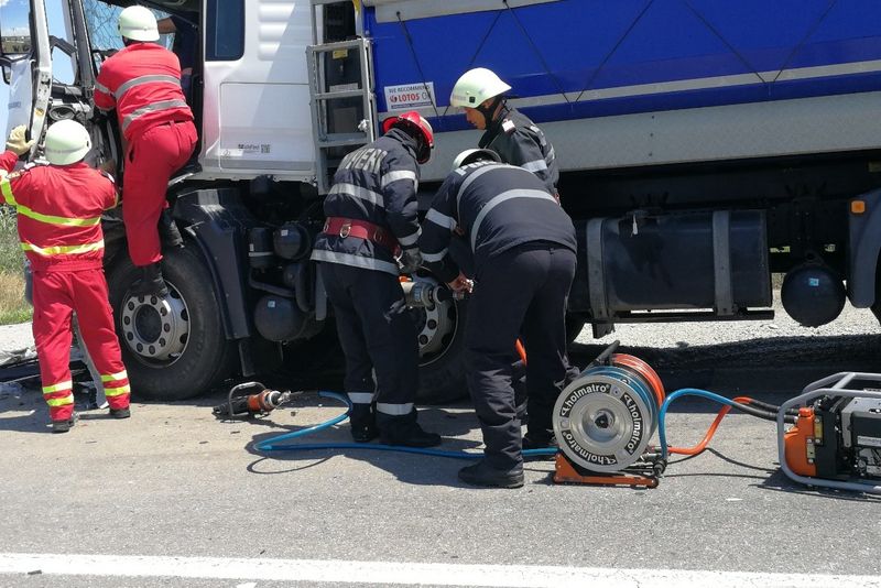 Un şofer de TIR în vârstă de 32 de ani, din Rotunda, a ajuns la spital, luni după-amiază, după ce a lovit un alt autocamion, care circula în faţa sa, rămânând blocat în autovehicul. Accidentul s-a petrecut pe DN 64, în localitatea Pleşoiu.