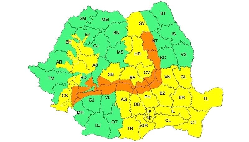 ALERTĂ ANM: FENOMENE METEO EXTREME. COD PORTOCAIU DE NINSORI ABUNDENTE ȘI VISCOL