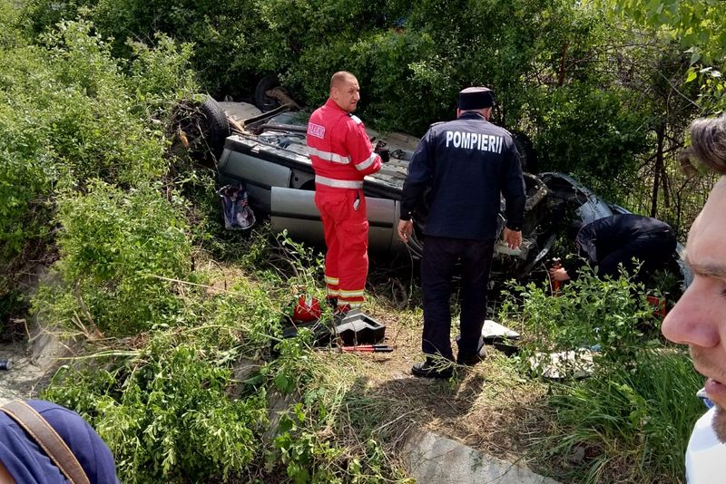 „Cascadorie” în Dolj: Un șofer băut a scăpat teafăr după ce s-a dat peste cap cu mașina - FOTO