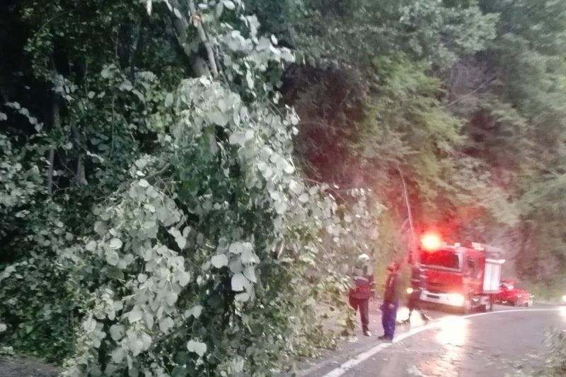 Vântul puternic de vineri după-amiază a creat probleme în județul Gorj. Un copac a căzut pe Defileul Jiului, în zona Lainici. A fost nevoie de intervenția pompierilor pentru a elibera șoseaua.