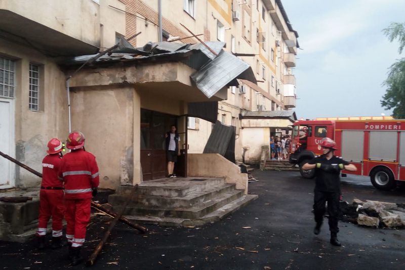 Mai mulți copaci au căzut pe stradă, în Craiova, iar în unul dintre cartierele orașului acoperișul unui bloc a căzut într-o parcare avariind mai multe autoturisme, din cauza furtunii de miercuri seara.