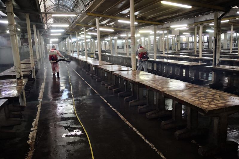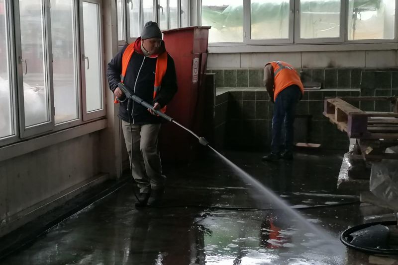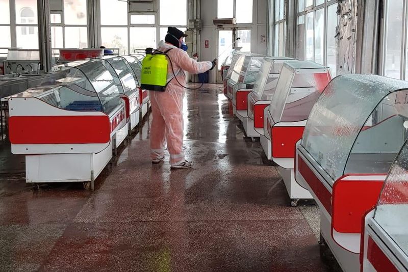 Duminică, toți comercianţii au eliberat toate mesele de marfă, astfel că personalul de întreţinere şi igienizare a avut posibilitatea să cureţe şi să spele în Piaţa Centrală întreaga hală de legume-fructe, cea de lactate şi brânzeturi, precum şi hala de carne.„Atât podelele cât şi mesele au fost spălate cu jet de apă şi detergenţi-dezinfectanţi. Pe aleile dintre mese a fost utilizată la igienizare maşina de spălat podele. În hala de lactate au fost igienizate toate vitrinele frigorifice. Apoi, echipa specializată de la SC Salubritate Craiova SRL s-a ocupat de dezinfecţie cu ajutorul atomizoarelor, folosind produsul biocid BIONET A15, care are efect bactericid, fungicid, levuricid, virucid și tuberculicid și poate fi utilizat pe toate suprafețele, inclusiv în spații de preparare a hranei”, spun reprezentanții Piețe și Târguri Craiova.Şi Piaţa Craioviţa Nouă-Big a fost curăţată şi igienizată integral, iar acest proces va continua și în perioada următoare.https://youtu.be/skNzJSdg_L0