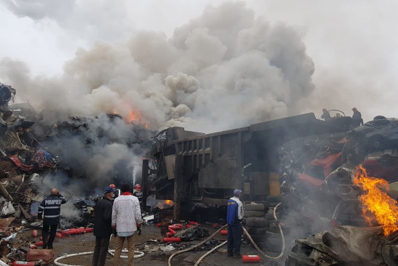 Un incendiu de proporţii a izbucnit, marţi, la un depozit de dezmembrări auto din cartierul Bariera Vâlcii din Craiova, pompierii încercând să stingă focul de aproape o oră.