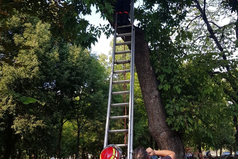 Pui de pisică, salvați de pompieri, într-un parc din Craiova
