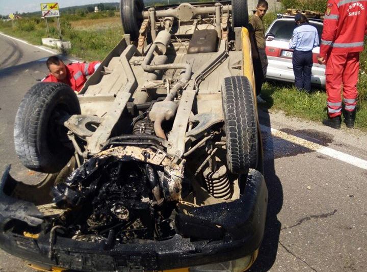 S-au răsturnat cu mașina într-o comună din Gorj (FOTO)