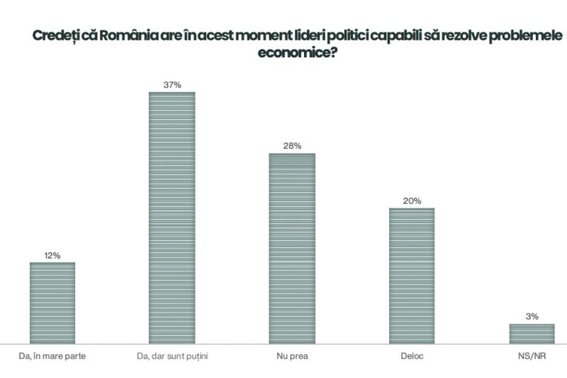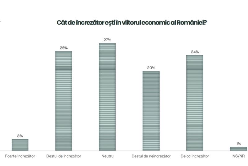 Nici viitorul nu sună bine pentru români, arată datele aceluiași sondaj: 24% dintre români spun că nu sunt deloc încrezători în viitorul economic al țării.