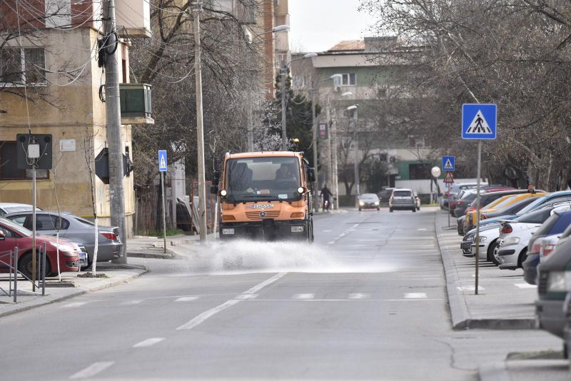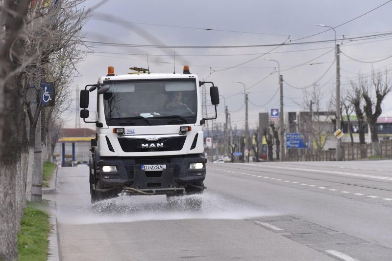 Străzile din Craiova sunt spălate și dezinfectate cu clor, aceasta măsură înscriindu-se în programul de prevenție al răspândirii virusului Covid-19.