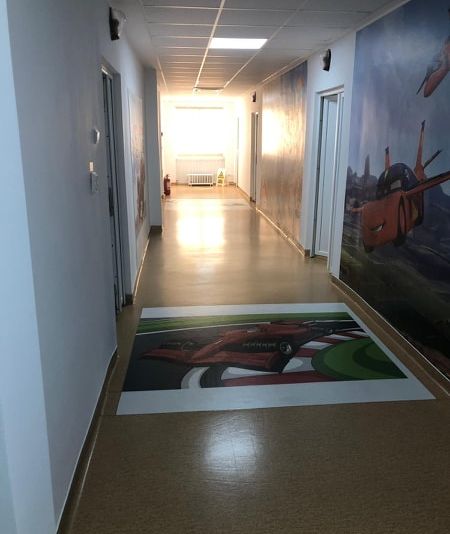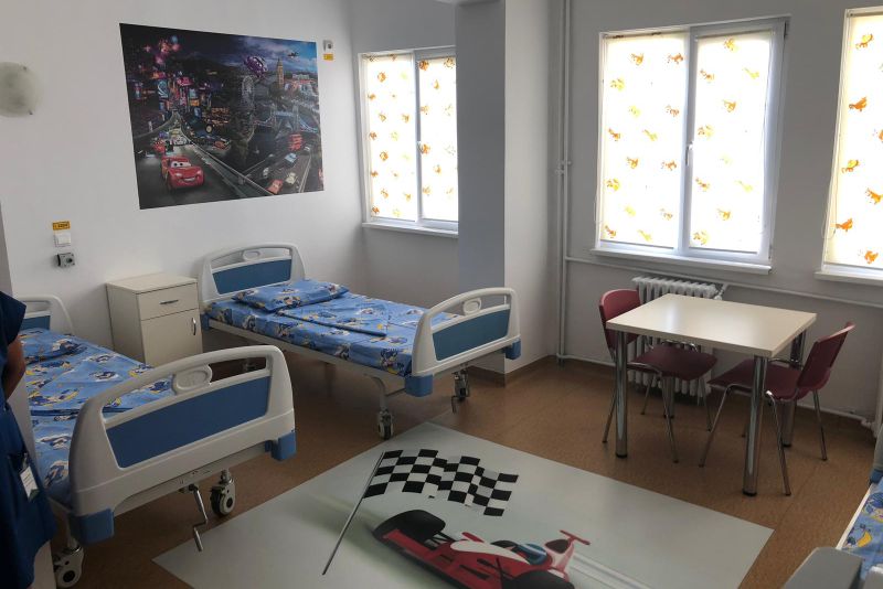 Saloanele și cabinetele medicale de la etajul cinci al Spitalului Clinic de Boli Infecțioase „Victor Babeș” din Craiova au fost complet renovate, micuții care sunt internați aici, fiind un etaj pentru ei, beneficiind acum de condiții moderne de spitalizare. Atât pe podea cât și pe pereți sunt postere cu imagini din desene animate, lenjeriile sunt speciale pentru copii, iar mobilierul este schimbat în totalitate.