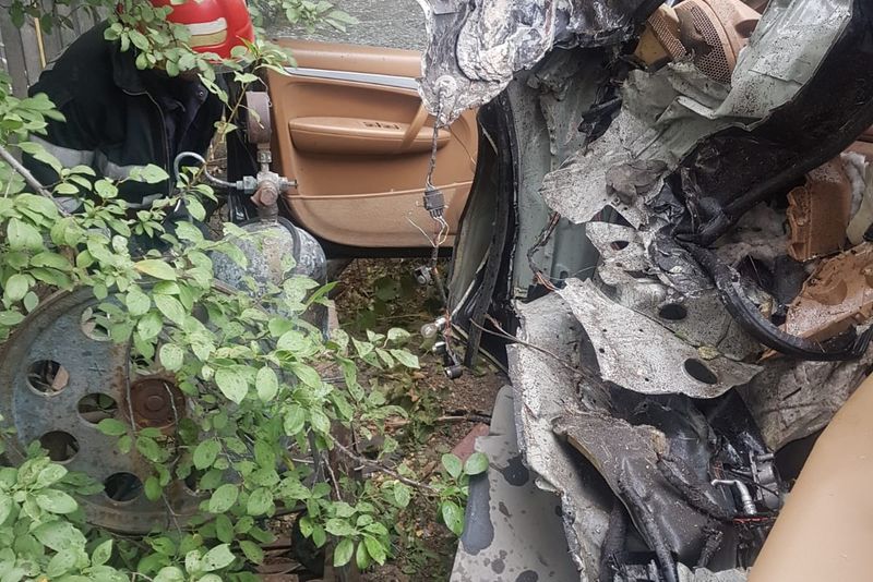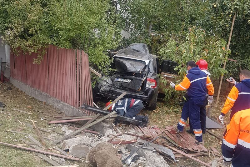 VIDEO/FOTO.Un bărbat din Craiova a murit pe loc după ce a ajuns cu mașina într-un stâlp de curent și apoi în gardul unei case