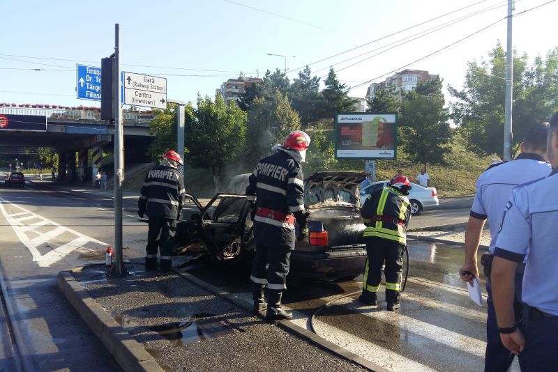 Un autoturism a luat foc, luni dimineaţă, pe bulevardul Decebal, în cartierul craiovean Lăpuş, în apropierea mall-ului, imaginile cu incendiu fiind postate pe Facebook.