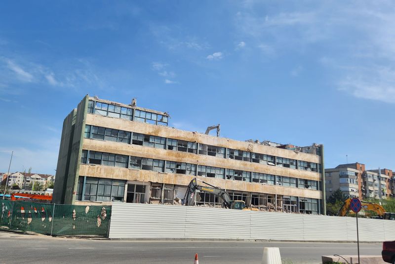 Două utilaje au fost urcate pe acoperiș și așa a început demolarea clădirii aflate în paragină care mai aducea aminte de marea uzină Electroputere. În locul imobilului cu 9 etaje și pe terenul aferent va fi amenajată o parcare cu 92 de locuri, ce va servi mall-ul ridicat pe ruinele fabricii.